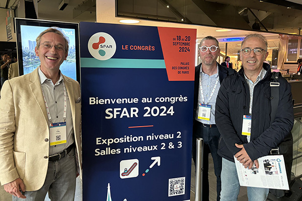 Journée fructueuse pour CODONICS et son distributeur français, FRANCE PHARMA SYSTEMS, à la SFAR 2024. Nous avons pu y rencontrer les principaux acteurs du marché des logiciels d’anesthésie, des fabricants de matériels mais aussi des clients hospitaliers à la recherche de médecins anesthésistes et d’infirmières spécialisées.